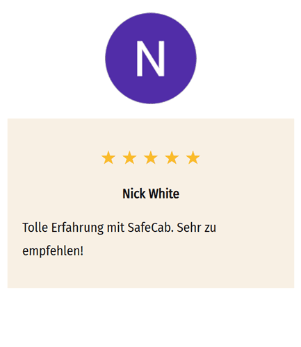 Wünschen Sie einen erstklassigen Chauffeur-Service, der Ihre Ansprüche erfüllt? Ob für eine Geschäftsreise oder einen wichtigen Termin, SafeCab sorgt für Ihre komfortable Beförderung. Mit luxuriösen Fahrzeugen und professionellen Chauffeuren bieten wir Ihnen einen angenehmen Transfer, der Ihre Erwartungen an Sicherheit und Bequemlichkeit übertrifft. Überzeugen Sie sich von unserem luxuriösen Fahrzeugangebot und Premium-Service. Neben exklusiven Transfers bieten wir spezialisierte Transportlösungen für Kinder und medizinische Zwecke an. Transparenz ist uns wichtig: Festpreise ohne versteckte Gebühren. Babyschalen, Kindersitze und Kindersitzerhöher Transport von Bikes, kleinen Tieren in Behältern, Fitnessgeräten und sperrigem Gepäck kann gegen eine Gebühr arrangiert werden.